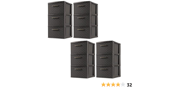 Amazon Com Sterilite 3 Drawer Wicker Weave Decorative Storage Organization Container Cabinet Tower With Driftwood Handles Espresso 4 Pack Home Kitchen